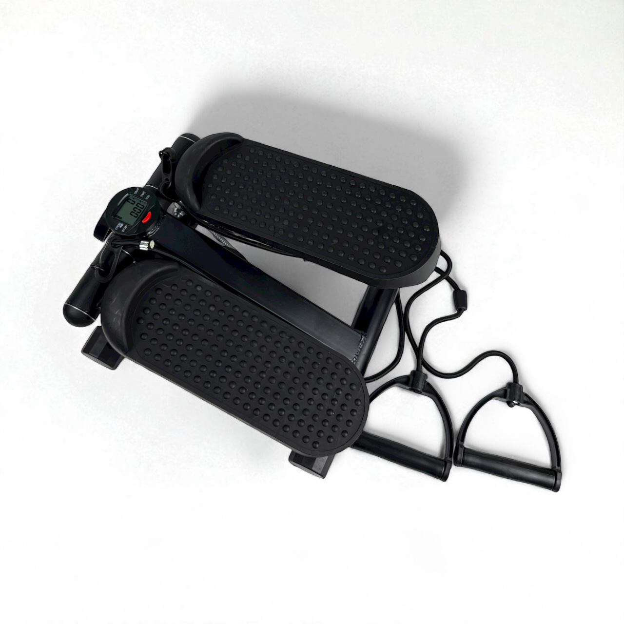 The Mini Stepper with Resistance Bands is your all-in-one home fitness solution. Built from durable 2mm steel with a dual hydraulic system, it supports up to 400 lbs while ensuring smooth, quiet workouts. Adjustable stride height lets you choose between endurance training or high-intensity calorie burn. The resistance bands engage your arms, shoulders, and back, while oversized non-slip pedals ensure safety. Compact at 34 x 30 x 25 cm, it fits anywhereโ€”home, office, or apartmentโ€”and comes fully assembled. With an LCD monitor tracking time, steps, and calories, this stepper helps you burn fat, tone muscles, and build strength in just 15 minutes a day.